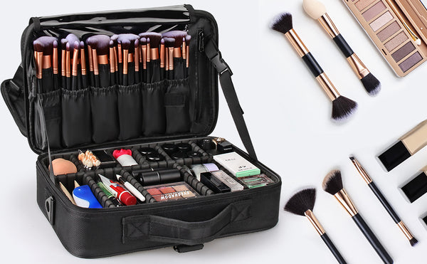 Compact makeup case to ensure safety and organization of your cosmetics and tools, also for storing Jewelry, electronic accessories, digital camera, toiletries and so on.