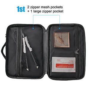 • ADJUSTABLE COMPARTMENTS AS NEEDED: The Travel Makeup Case with adjustable dividers, can adjust the divider to fit the cosmetics. Three large zipper pocekts for the large palettes or cosmetic tools.