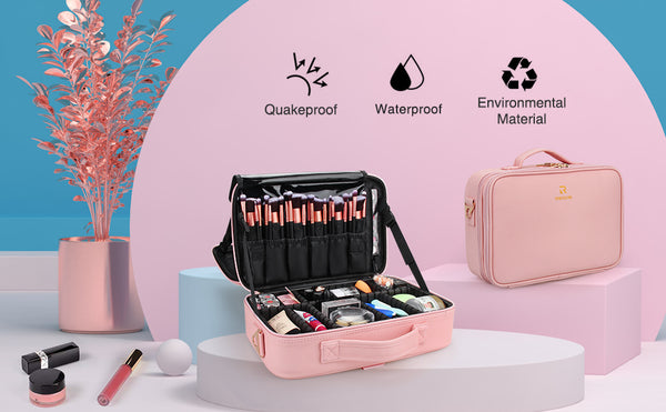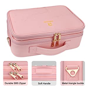 •  PERFECT FOR TRAVEL, WITH SHOULDER STRAP AND HANDLE: The Travel Makeup Case is lightweight and portable, perfect for travelling, design with shoulder strap and durable handle.